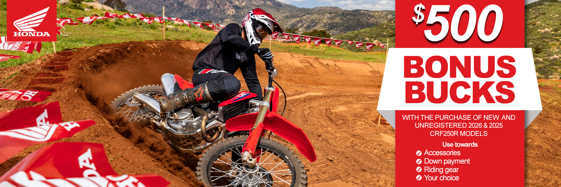 Fixed APR starting at 3.99% on 2025 CRF250RX